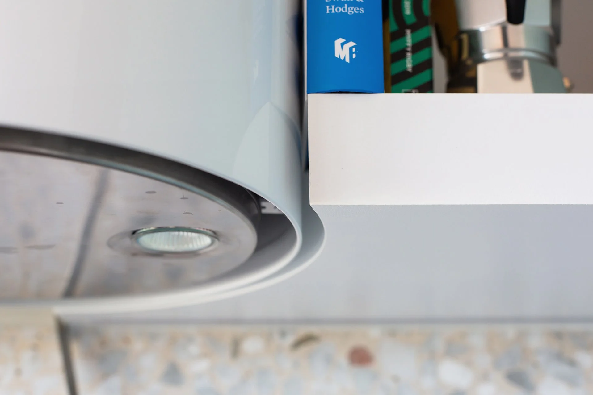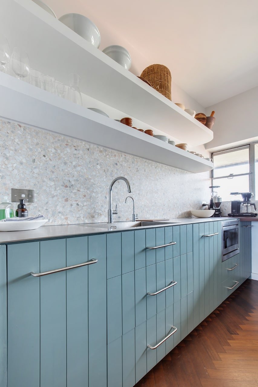 Cleverly-renovated galley kitchen and apartment to maximise space.